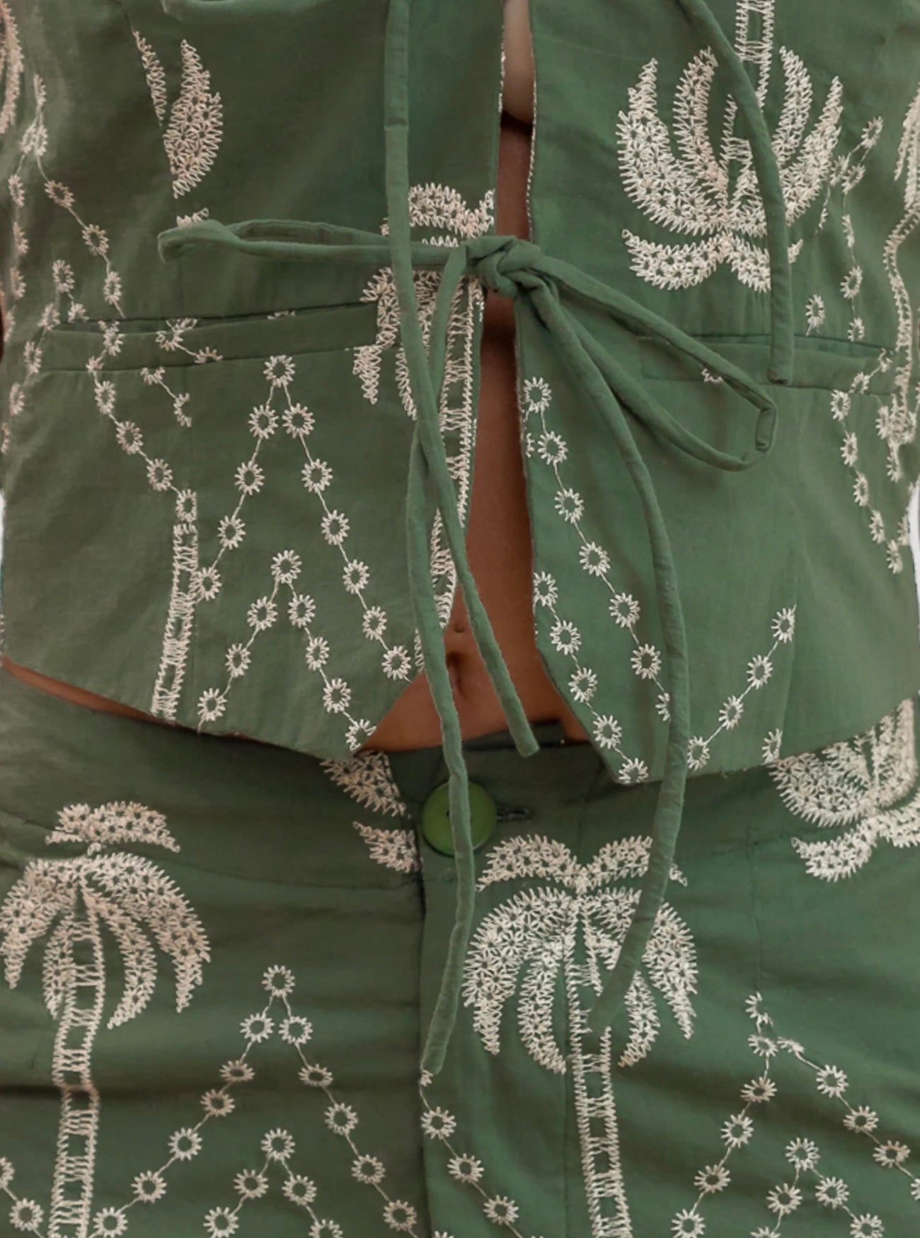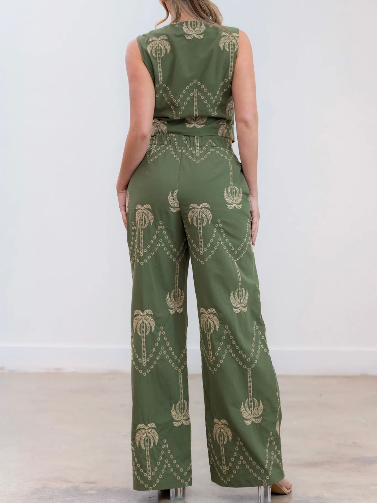 Embroidered Palms Vest and Pants SeT