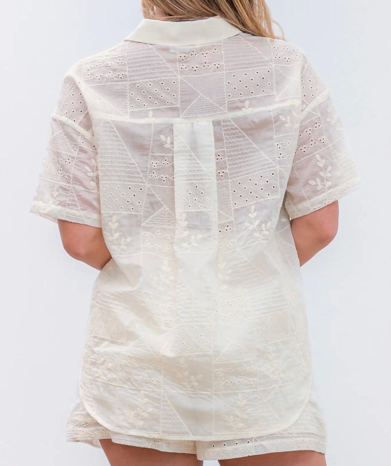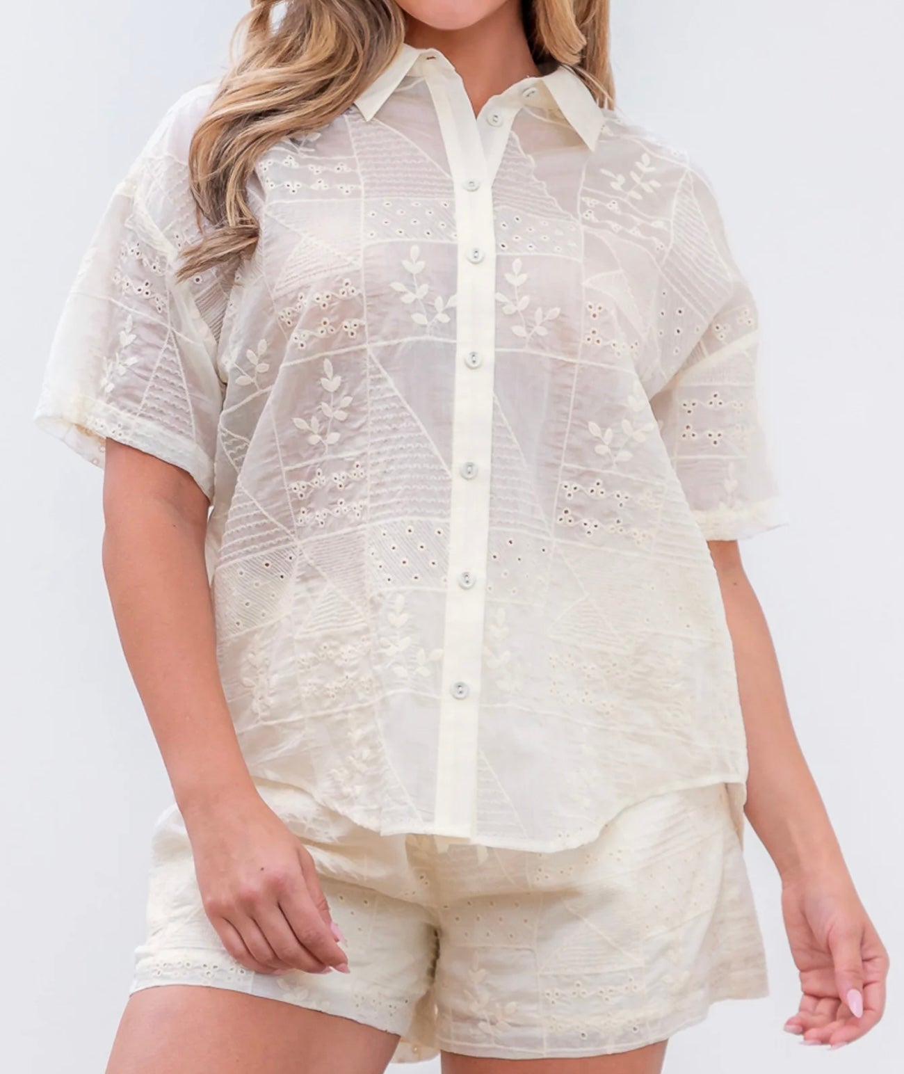 - Details: Button Down, Collar, Half Sleeve, Drawstring, Side Pockets, Elastic Waist, Lining, Pleated, See Through Top.