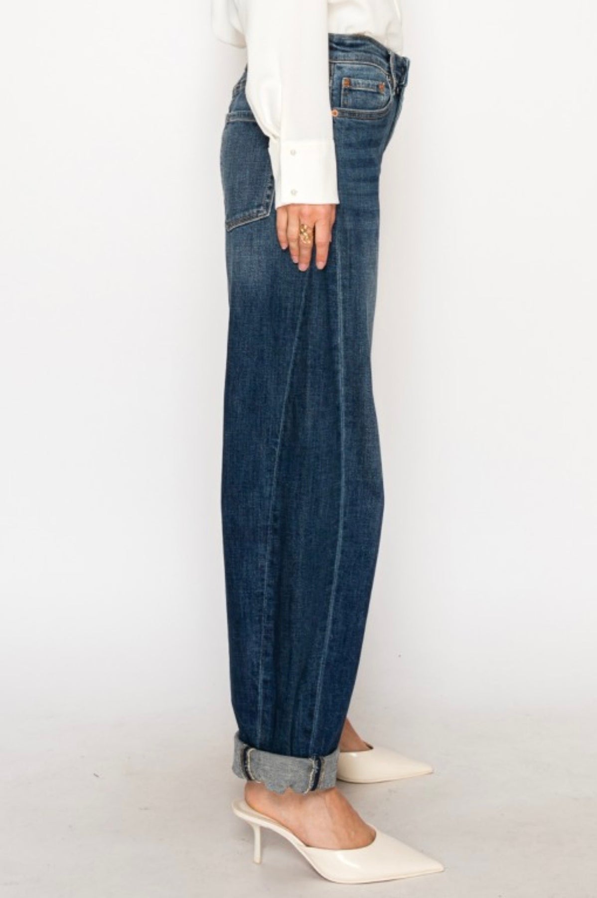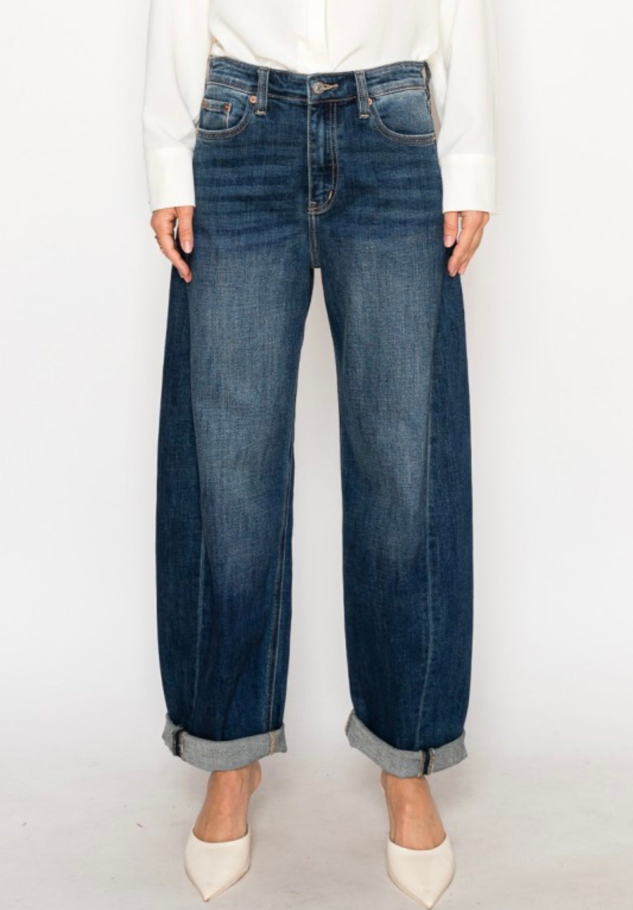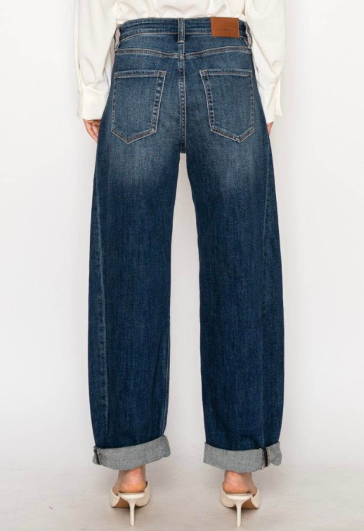 Relaxed through the hip and thigh, this barrel-fit jean features a gently tapered leg that creates a laid-back, comfortable silhouette without feeling overly baggy. The tapered ankle provides a clean, streamlined finish, while comfort-stretch denim ensures ease of movement all day long. Designed in a dark stone wash for a polished look, this pair is non-distressed for versatile styling. Wear them cuffed for a cropped feel or uncuffed for full length.