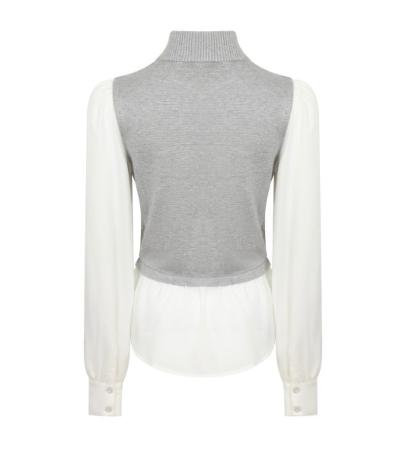 Elegant, feminine, and effortlessly refined. The Parisian Layered Top features a soft heather grey knit bodice paired with crisp white sleeves and hem for a chic layered illusion. A delicate keyhole neckline, adorned with a crystal clasp, adds a subtle hint of glamour. It’s the perfect piece to elevate your everyday wardrobe with a touch of Parisian grace.