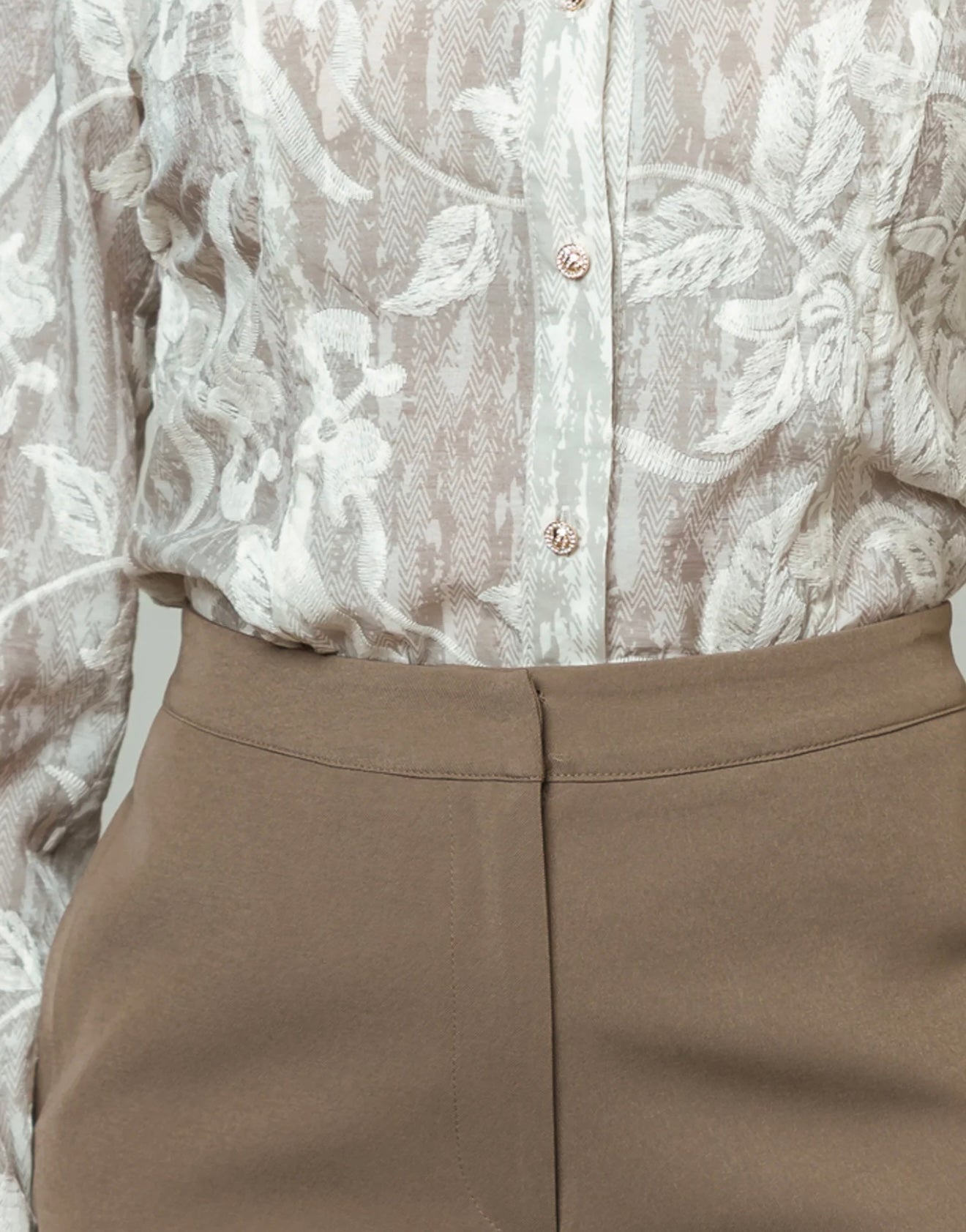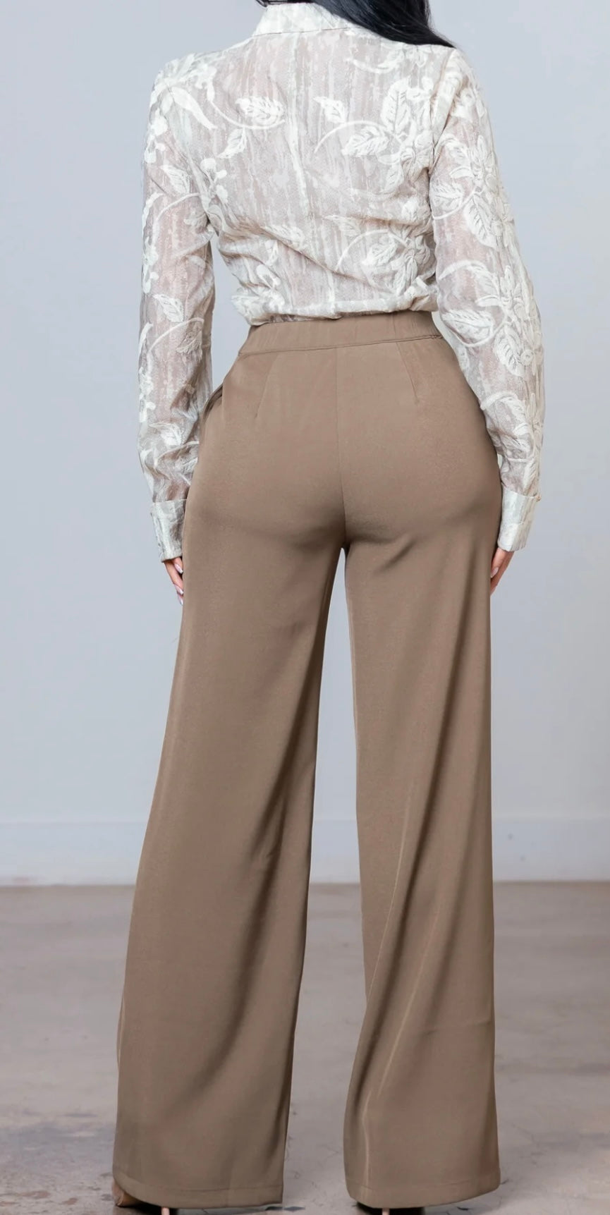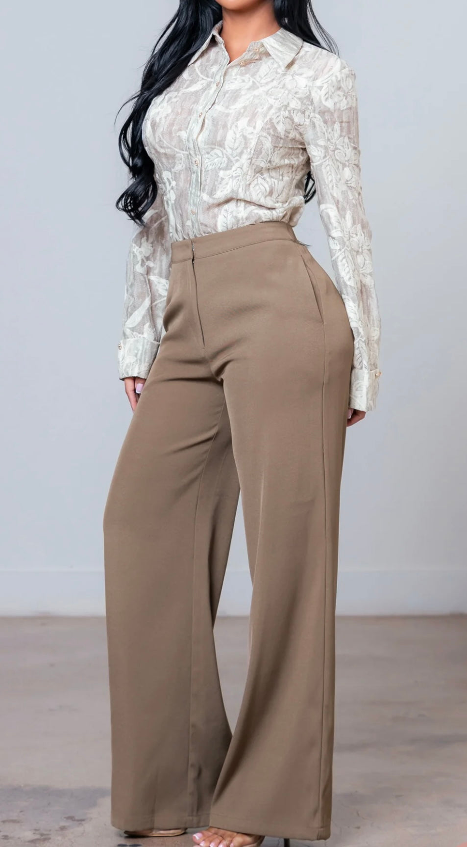 - Details: Side Pockets, Button Down, Cuff Sleeve, Collar, Front Zipper, Back Elastic Waist, Wide Leg, Set.