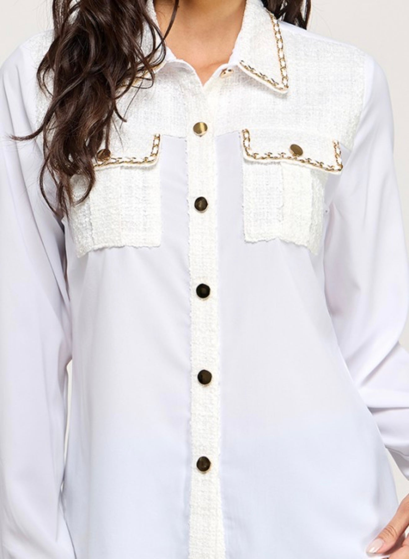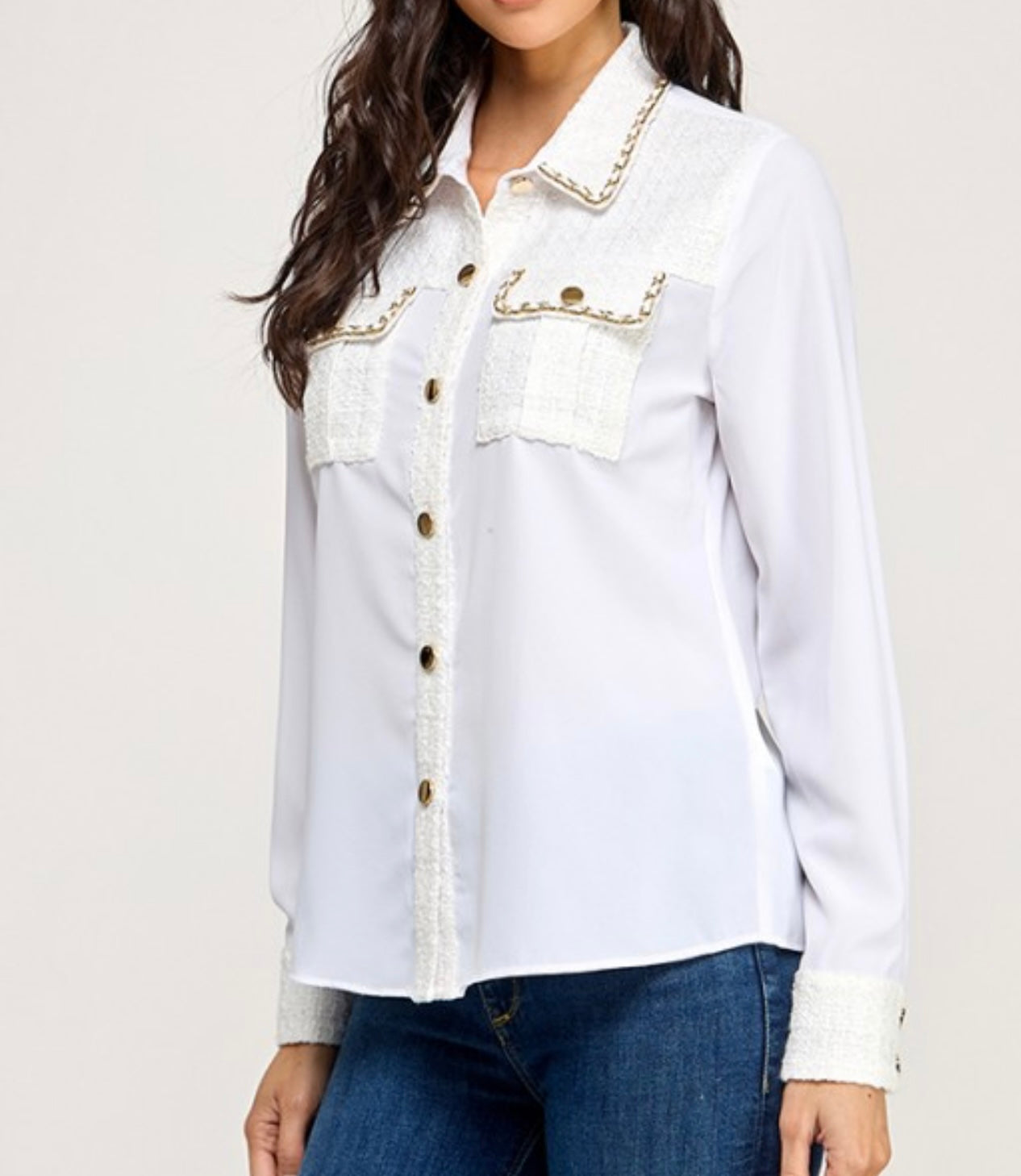 Long sleeve tweed patch shirt.